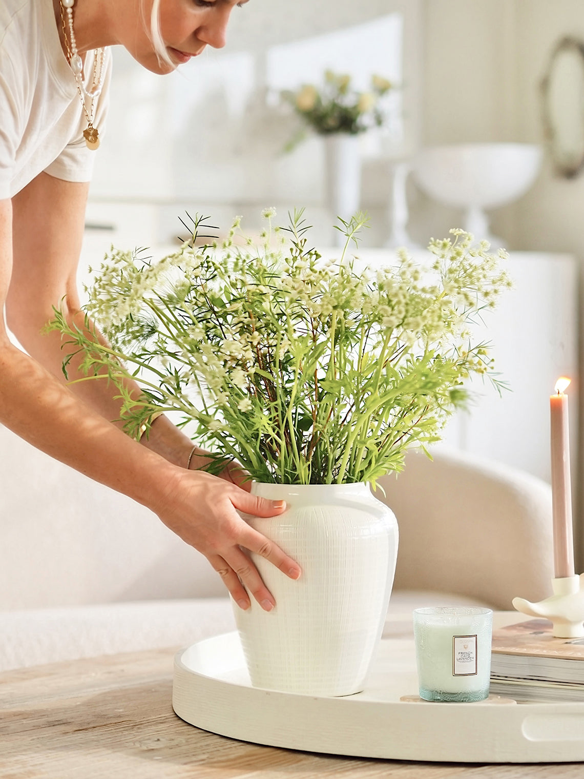 The striking sculptural shape will make a great impression with flowers or as a showpiece in its own right. Each pot, jar and vase is glazed the old-fashioned way, individually and by hand. Made to last for generations to come. Quality will always be classic.