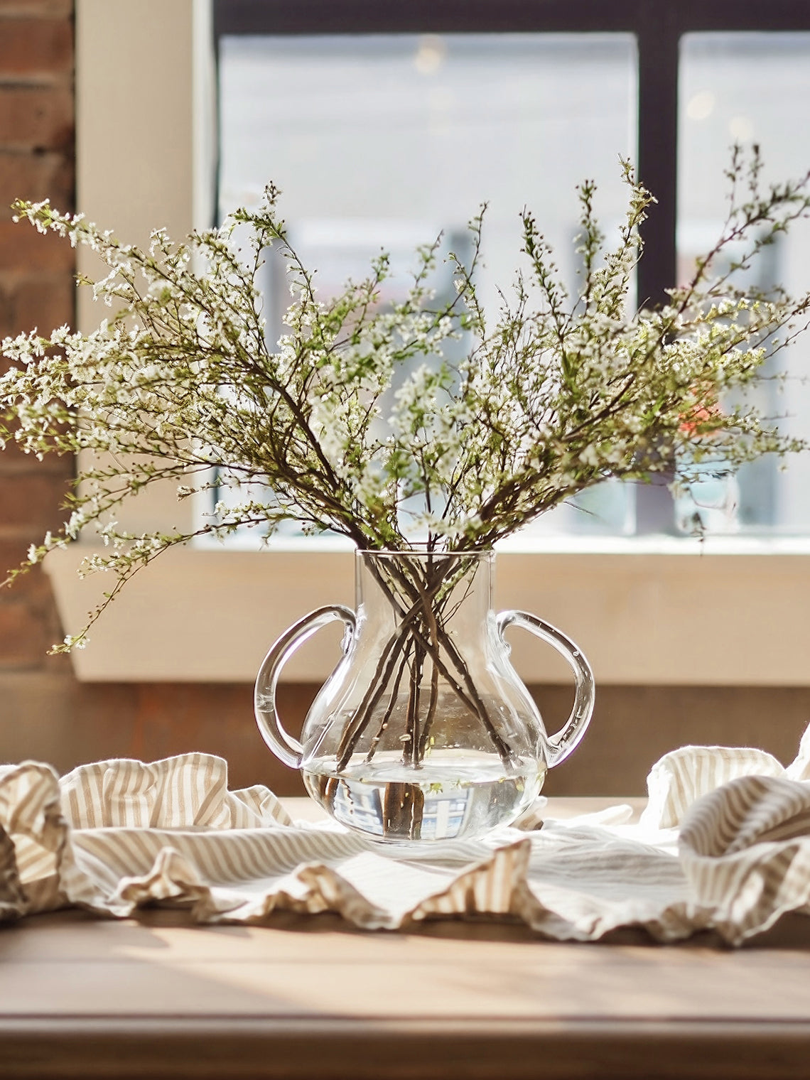 Add a sculptural moment to your shelves or tabletop with the Miro Glass Vase, inspired by the shapes of ancient urns.