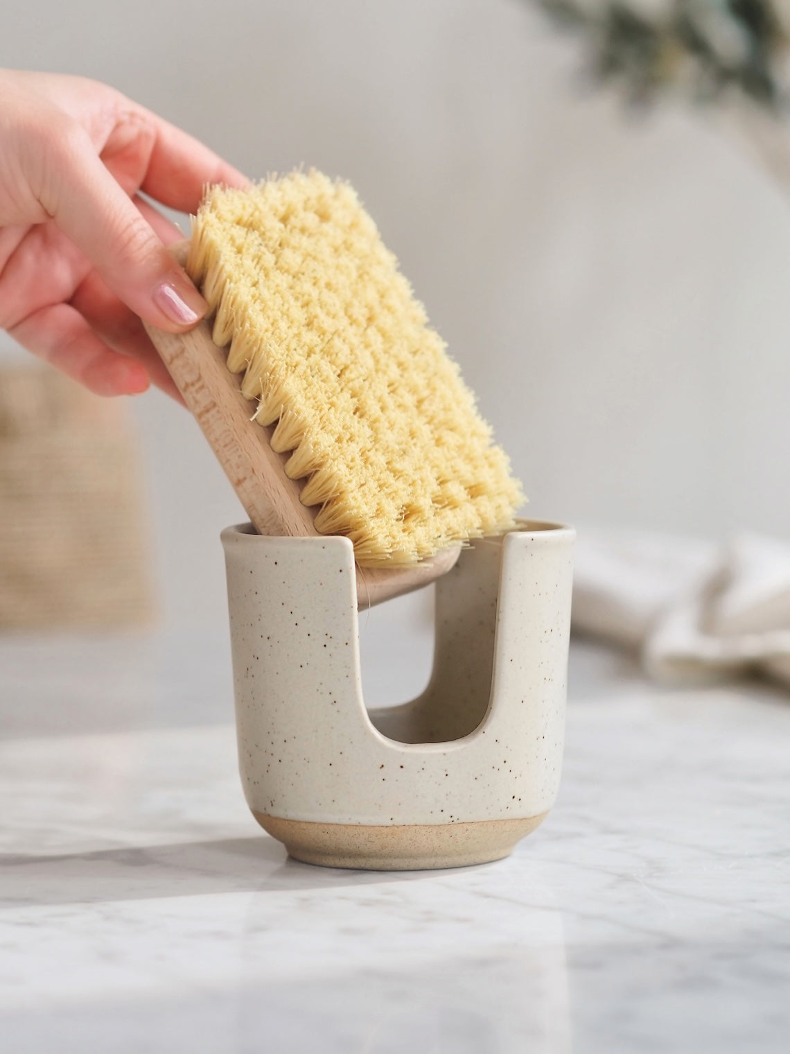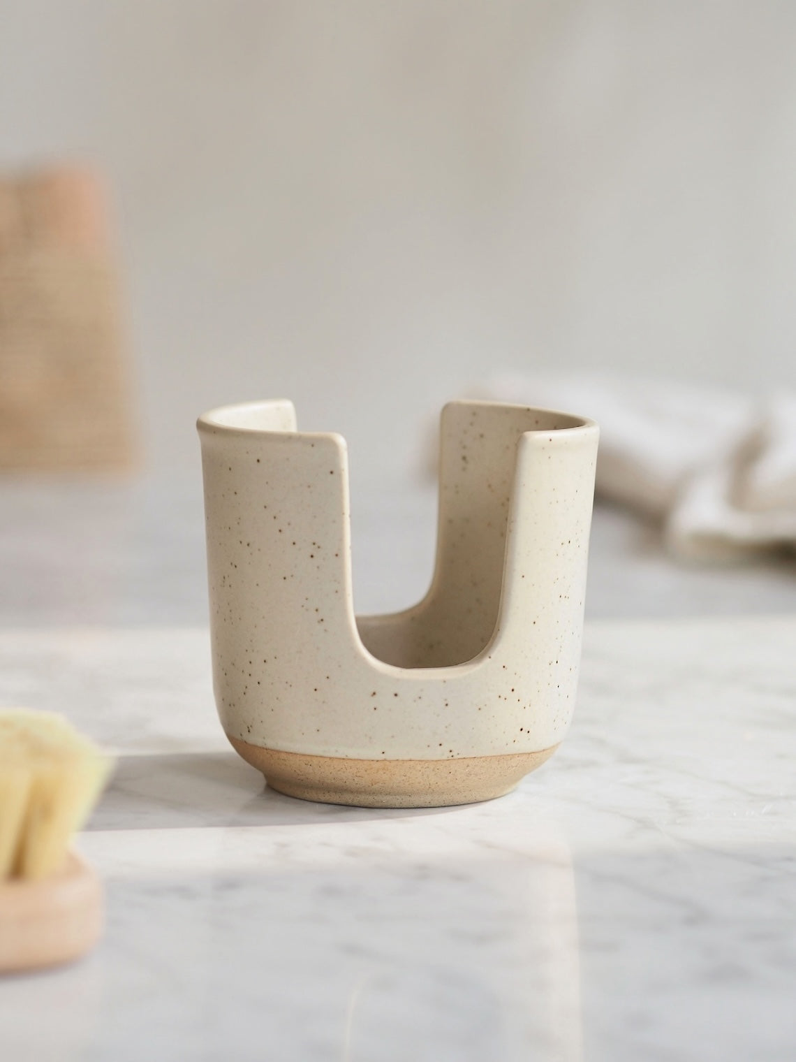 Wide enough to hold larger-sized sponges and with nesting rings at the base, use this sponge holder to dry and store sponges or a dish brush.