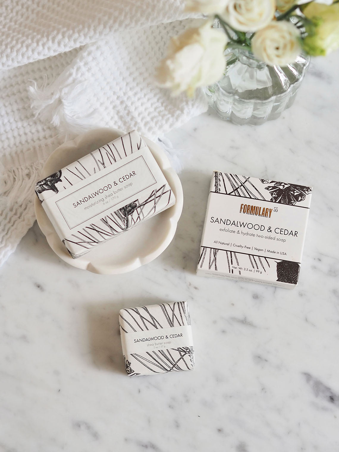 Earthy, seductive, sophisticated, and woodsy. The Sandalwood & Cedar soap is made up of over 6 perfumes and essential oils.