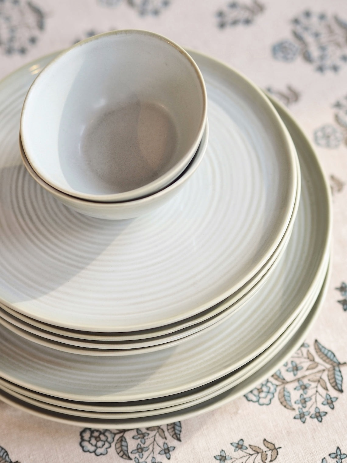 Soft sage tones and gently curved forms bring a sense of calm to the table with the Kiran Sage collection. The organic shape and subtle reactive glaze create beautiful variations in colour and texture, giving each piece its own artisanal character. Effortlessly versatile, Kiran Sage feels just as at home at a casual breakfast as it does at a thoughtfully set dinner table.