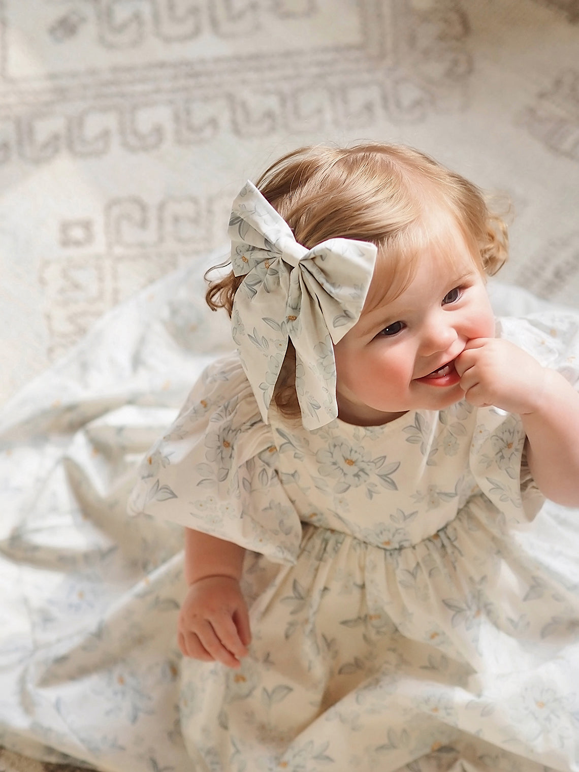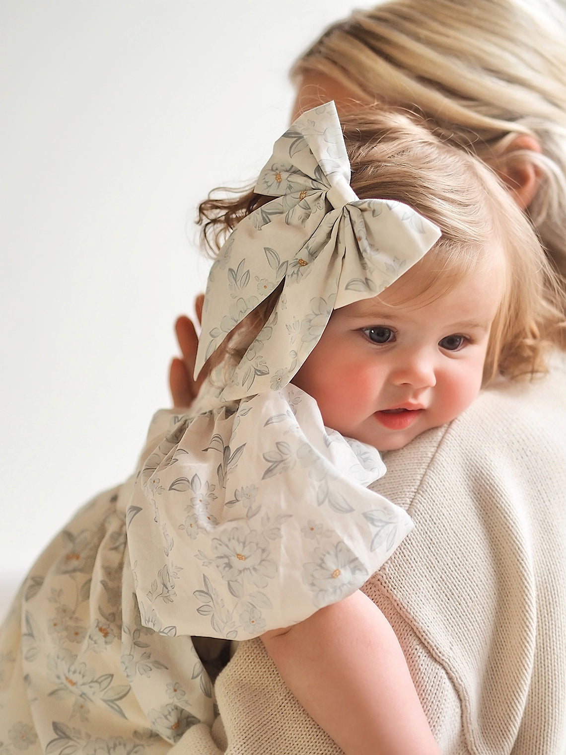 Oversized hair bow attached to a rose gold alligator clip. Coordinates perfectly with English Rose Dress or English Rose Romper.