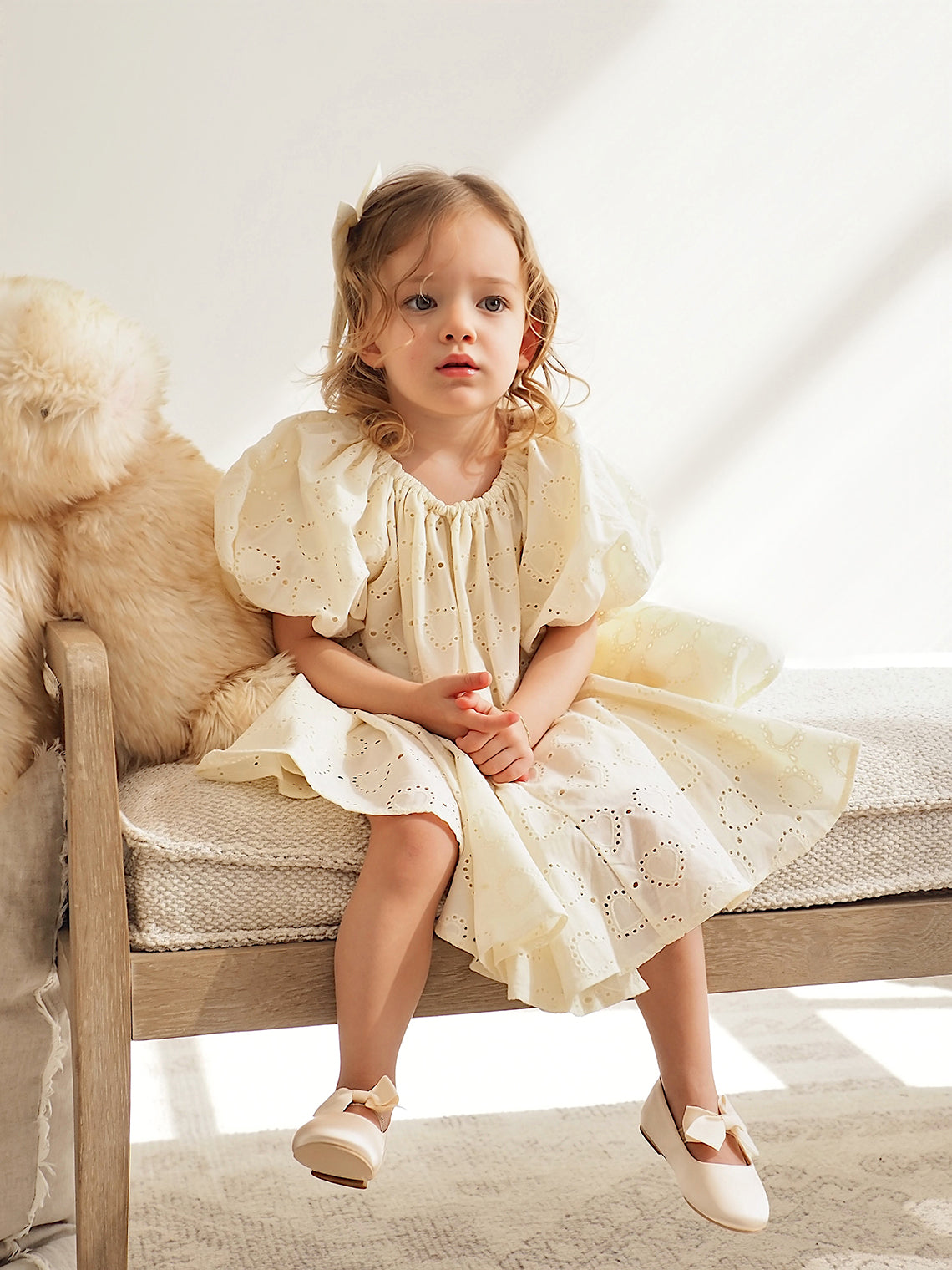 Maia Heart Eyelet Dress features puff short sleeve and a full volume skirt, in our embroidered heart eyelet fabric.